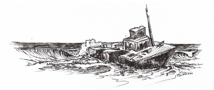 Now that the wrecks super structure has been washed away he can share the stories of his fishing adventure.